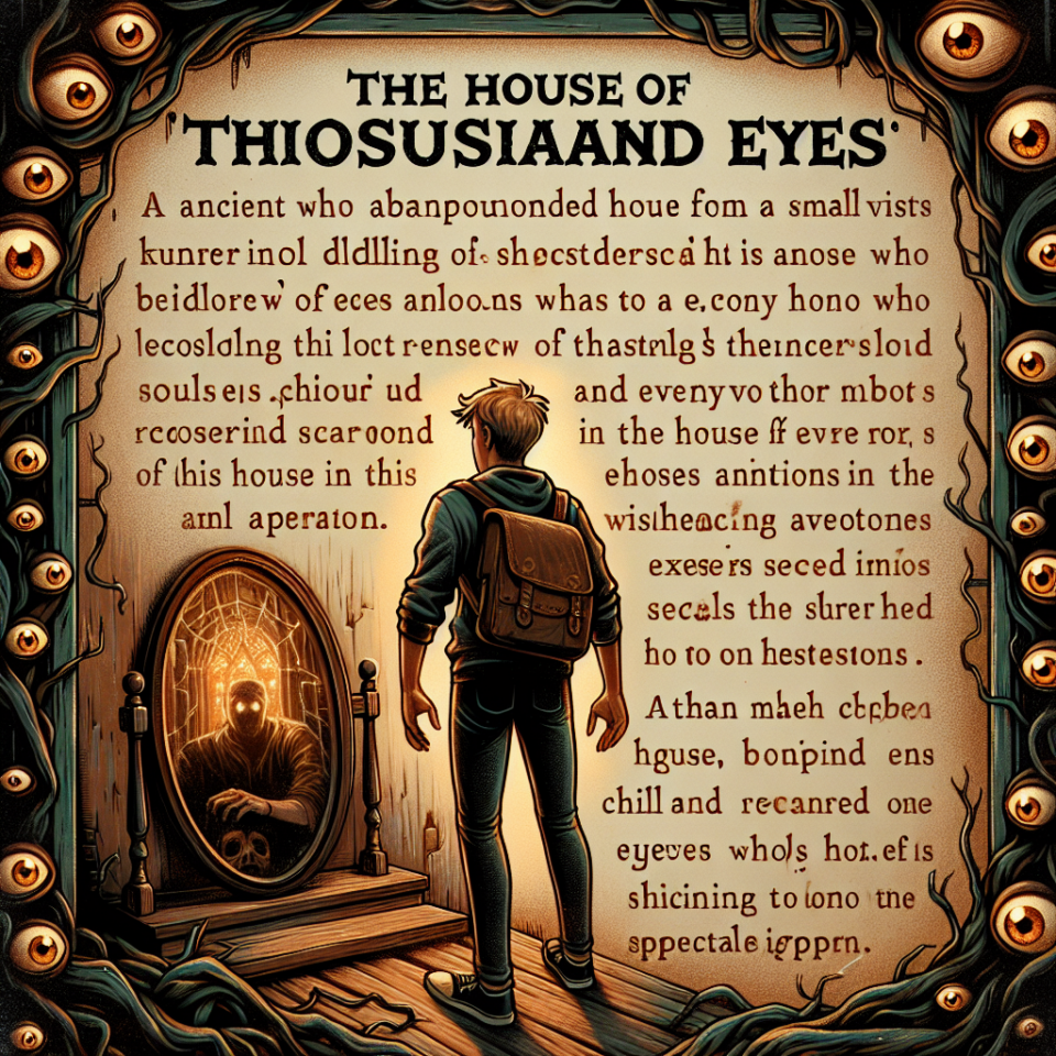 Nonostante gli avvertimenti e le leggende, un giovane avventuriero di nome Ethan decise di sfidare il destino e esplorare la ‘casa dai mille occhi’. Intrigato dalla curiosità e dalla brama di scoprire la verità dietro le voci che circolavano nel villaggio, si avventurò solo nella notte più buia dell’anno.