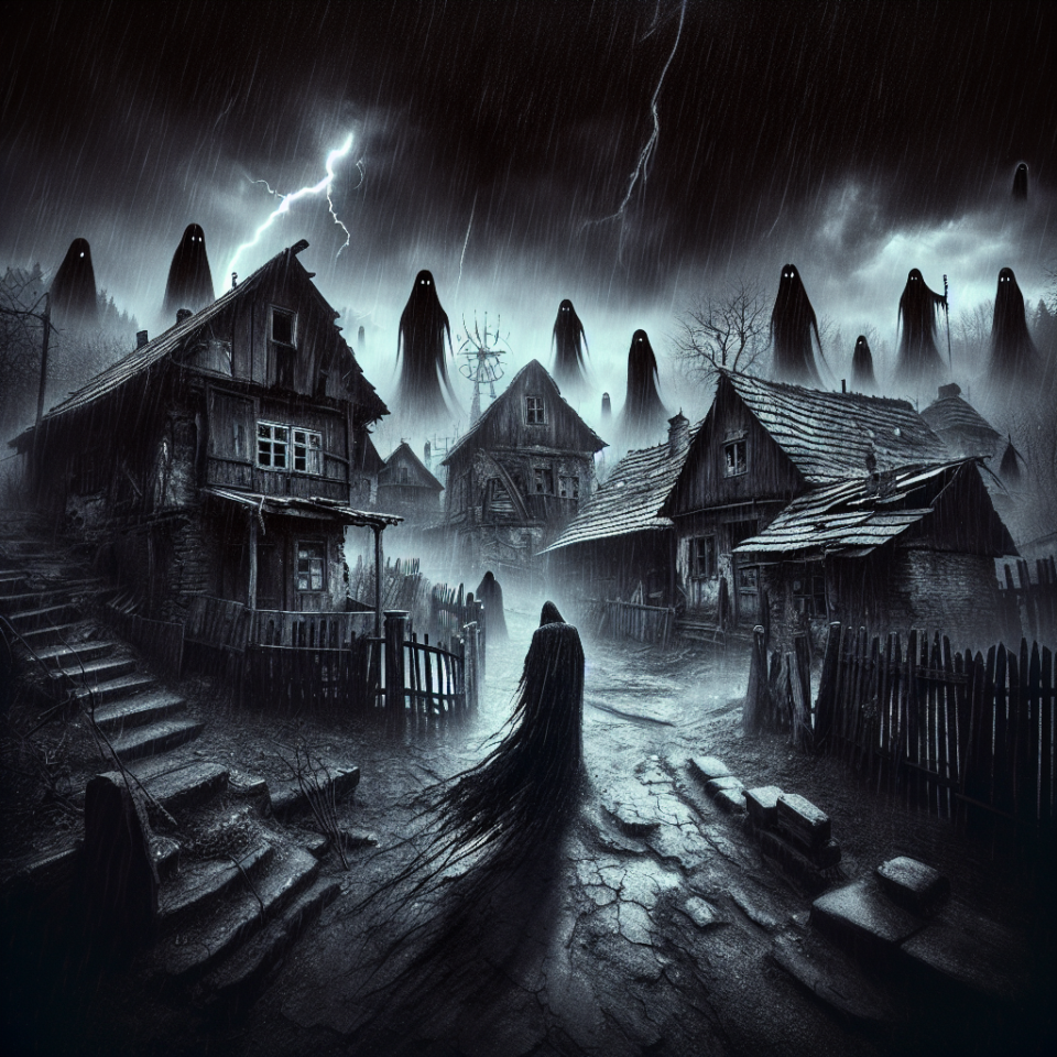 La notte era oscura e silenziosa nel vecchio villaggio abbandonato. Le case diroccate sembravano immobili, come se il tempo avesse deciso di congelarsi in quel luogo desolato. Improvvisamente, in lontananza, si udì il suono delle prime gocce di pioggia che iniziavano a cadere.