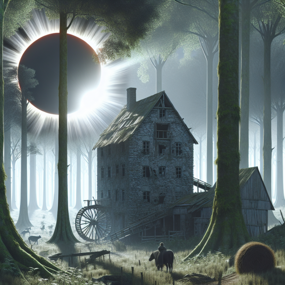 Un giorno, mentre il sole splendeva alto nel cielo, un’ombra iniziò a distendersi sopra il Mulino. Il contadino del villaggio, Giovanni, osservava incredulo la rapida eclissi del sole, una scura macchia che oscurava ogni raggio di luce.
